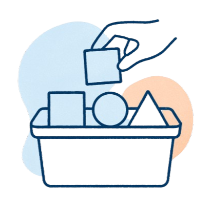 Builds logic through arranging objects by color, shape, size, or sequence.